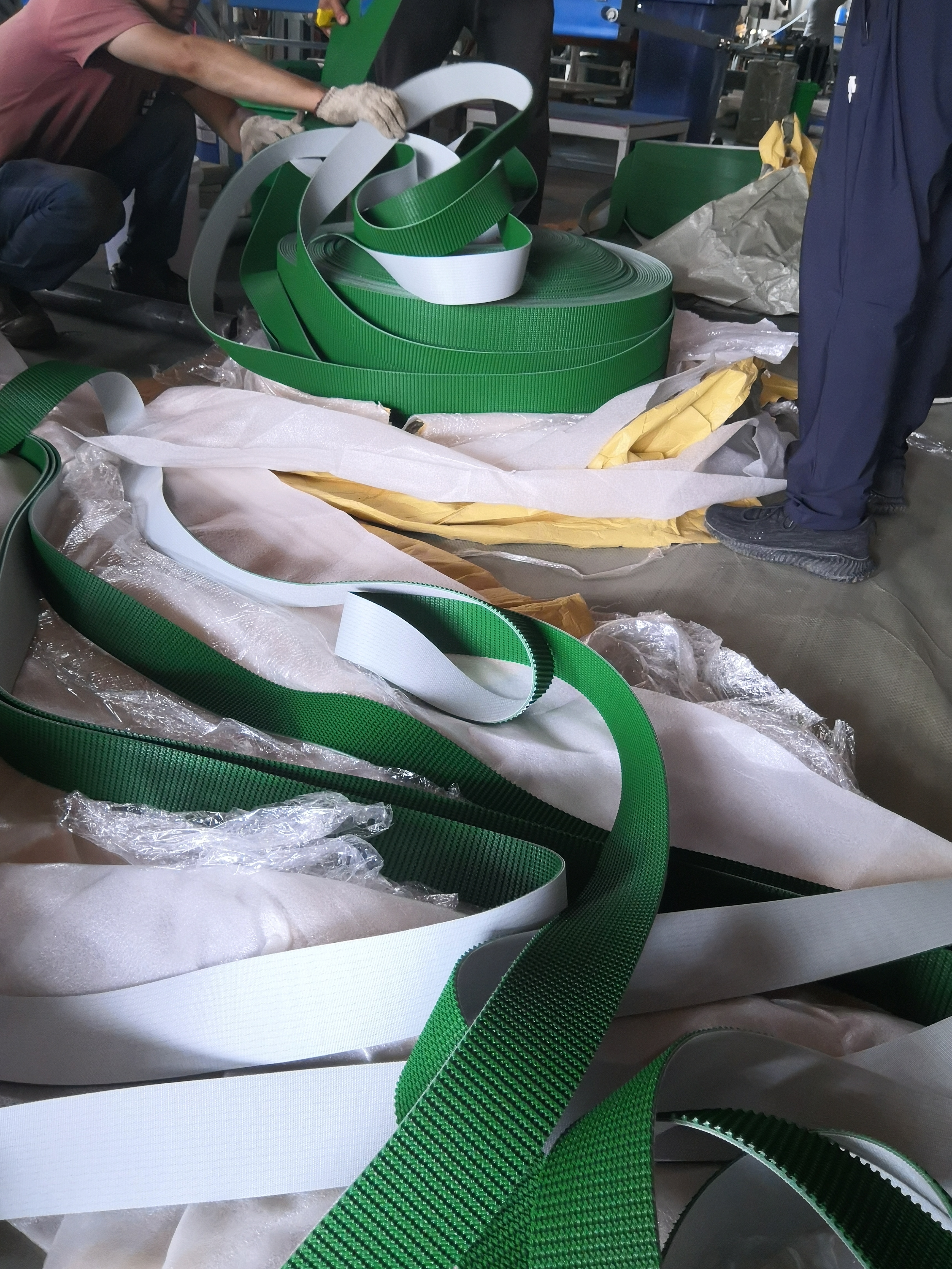 A cinta transportadora de PVC é cuidadosamente embalada em rolos e caixas, com paletes disponíveis para envio.Cada cinto é embrulhado em material protetor e colocado em embalagens duráveis para evitar danos durante o transporteFornecemos informações de rastreamento para todas as remessas.